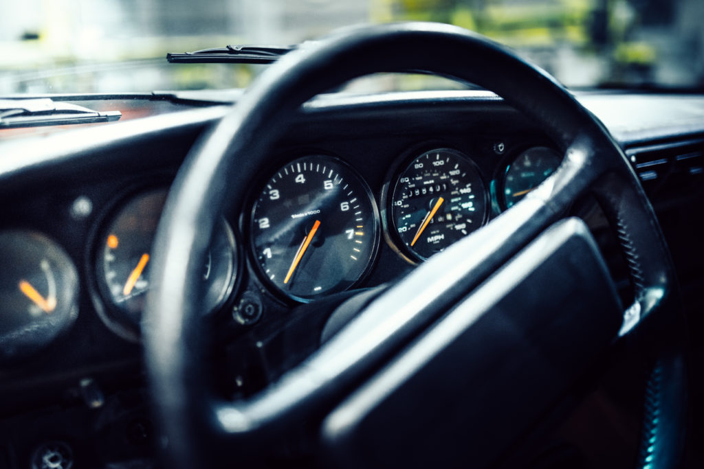 All of the black face VDO instruments are fully functional and look nice. The black dashboard has no cracks or tears. This 964 is equipped with working air-conditioning, and an electric sunroof that operates flawlessly. All switches, instruments, power windows, and the Blauplunkt radio work as they should.