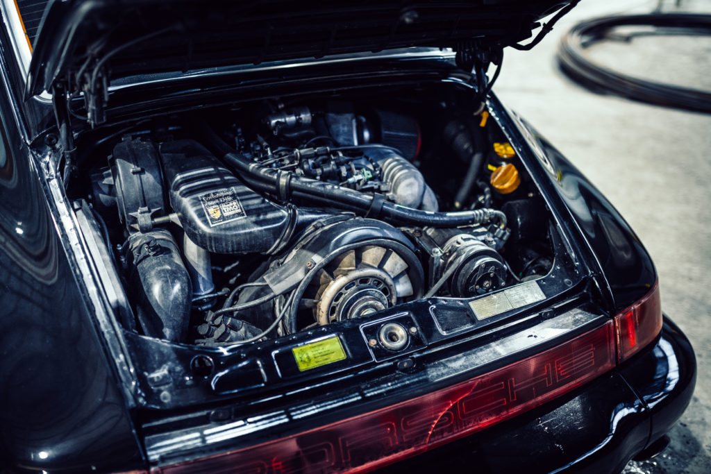 The air/oil-cooled, horizontally opposed, dry-sump lubrication, rear-mounted 247 hp motor is still powerful. The car has its original 3.6-liter flat-six engine in place. Wiring, plumbing and equipment are factory except for the fluids, filters, and belts. No leaks, the engine is dry.